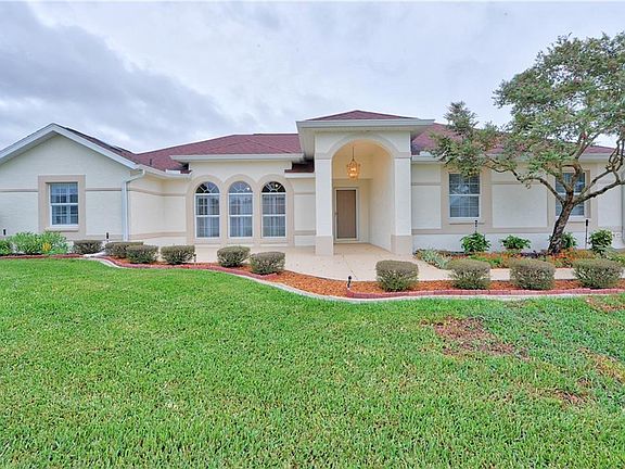 SPECTACULAR POOL HOME ON CORNER LOT WITH FABULOUS GOLF COURSE AND WATER VIEW! Lush landscaping leads to this newly painted house with a lovely sitting area in front of the house. Formal living room and Kitchen has a cathedral ceilings. Kitchen is open and airy with Nutmeg Maple Wood Cabinets, some with glass display doors, built-in oven, clear top range, time saving dishwasher, with moveable Center Island with wheels. Florida room is located off of the kitchen area for easy conversations. Room accommodates a large screen television and has built-in book shelves. Inside room off of Family room could be used as a computer room. Master bedroom ceiling fan and two walk-in closet. Just think, you could wake up in the morning, pick up a cup of coffee and relax for a little longer enjoying the beautiful view from the sitting room of the Master Bedroom, while relaxing. Master bathroom has antique, fruitwood Thomasville cabinets in excellent condition and matching mirrors, new sinks and faucets, new lighting, walk-in shower and plenty of storage. Florida Room/Lanai has been remodeled with all glass windows and French doors to facilitate and enhance the appearance of the pool and picturistic view altogether covered a substantial area of livable floor space under heat. The inviting pool, with Super Gutter and deck area has cathedral screening and plenty of room for patio furniture with outstanding view of the golf course and the beautiful water view. All pool items will remain with the property. Enjoy your evenings watching the pond birds and your beautiful peaceful setting. Roof (2015) Located in Ocala Palms Golf & Country Club, 18 Hole Golf Course, Outdoor Olympic size pool, indoor heated pool, 19,000 sq. ft. Clubhouse, etc. Close to Shopping (Publix across the street), Banks, Restaurants, McDonalds, etc. 1.5 Miles East of World Equestrian Center. All measurements are approximate. Buyer(s) to re-measure.