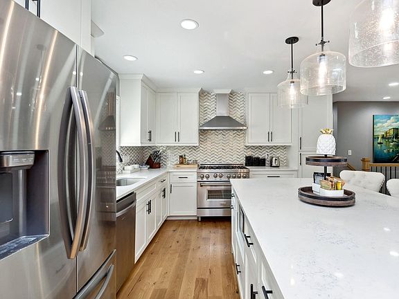 Luxurious walkout rambler in the great Birchcrest neighborhood. Absolutely stunning down to the studs remodel. Open floor plan has top of the line finishes from top to bottom. Large living room with beautiful White Oak floors. The kitchen has an oversized quartz counter top that goes perfectly with the elegant backsplash. New appliances throughout the entire home including main floor top loading washer/dryer. The owner's suite has a spacious walk-in closet and curb less glass shower with custom tile. Lower level features: wet bar with granite counters and stone backsplash. Connected to the bar is a theatre room and game room perfect for entertaining. This gorgeous 4 bed, 3 bath home is situated on a large lot in the heart of Edina with easy access to schools, shopping, parks, and entertainment.