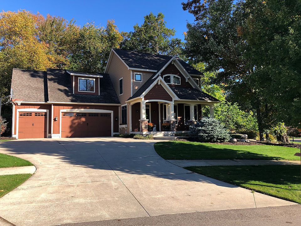 West Village / Forest Hills schools by Epique Homes. Fresh neutral taupe paint and carpet, new screen porch addition, and finished lower level with wet bar. Premier lot backs up to woods and paved forest trail, yet offers private backyard with screen porch, lower patio and firepit, plus expansive grassy side yard. Main floor is family and entertainment central. Massive 8 foot center kitchen island with snack bar seating is the heart of the home. Oversized family room with wooded views, fireplace, and sliders to screen porch. Informal dining room plus gracious foyer and covered front porch. Upstairs boasts 4 large bedrooms plus laundry. Master Suite has luxury bath, heated floors and custom tile shower and tub. Finished walkout lower level has 5th bedroom, wet bar & rec spaces.