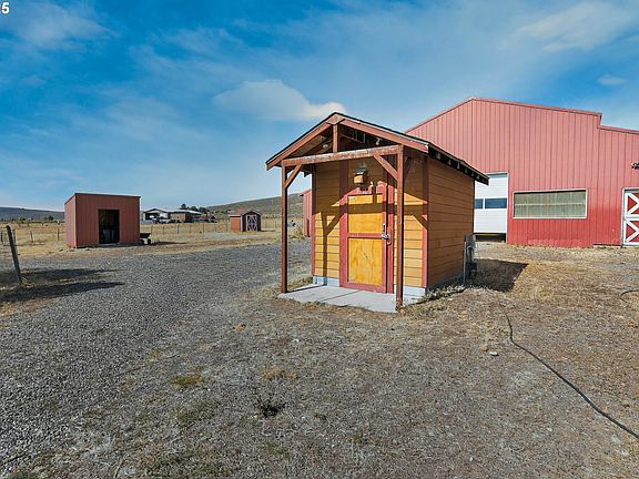 Discover your dream country estate in this 2005 custom-built farmhouse on 10.29 private, level acres. Spanning approximately 2,480 sq. ft., this property offers breathtaking mountain and valley views, creating a turnkey sanctuary for equestrians, hobby farmers, or anyone seeking tranquility with exceptional amenities.The heart of this 4-bedroom, 2.5-bath home is the spacious kitchen, featuring beautiful hickory cabinets, a pantry, and an open layout perfect for entertaining. High vaulted ceilings enhance the sense of space and light throughout the main level. The convenient main-floor primary suite acts as a private retreat with its walk-in closet and accessible walk-in shower. A standout feature is the incredible indoor recreation room, complete with a heated lap pool and spa for year-round enjoyment. Built with superior R-50 foam/concrete walls and warmed by an efficient hydronic radiant floor heating system (plus a cozy wood stove), this home offers unparalleled comfort and energy savings. Outside, the property is fully equipped for the equestrian or hobby farm enthusiast. A massive 35'x72' barn includes a riding arena, tack room, and an attached workshop. The grounds are fully fenced and cross-fenced, offering excellent pasture, a pump house with storage, a poultry coop, and ample RV/boat parking. The serene landscape is highlighted by three seasonal ponds, one of which is spring-fed, ensuring a picturesque setting through the seasons.Located just 24 miles from Baker City and 35 from La Grande, you're a short drive from the recreational havens of the Wallowa-Whitman mountains and the Eagle Cap Wilderness. With high-speed fiber internet available, you can seamlessly work from home without sacrificing the peace of rural Oregon. This isn't just a home; it's a complete lifestyle package ready for you to enjoy.