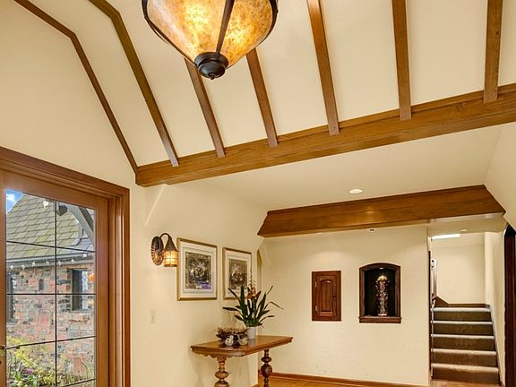 English Cottage Charm on a Grand Scale. Elegant & whimsical 4000 sqft waterfront home featuring stunning views of Lake Washington & Mount Rainier. This 4bd/5ba home has top quality finishes throughout. Marrying history and modern convenience this exceptional residence offers 75 feet of low bank waterfront & shared dock for all your entertainment & recreational needs. Conveniently located mid-Island, minutes to shopping & schools, downtown Mercer Island & the I-90 freeway.