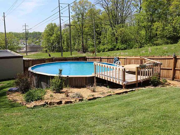This gorgeous 3-bedroom, 3-bath home features an above-ground swimming pool with a sun deck and a large yard that has been beautifully landscaped. The home features three levels of living space with the main level offering a spacious kitchen with appliances included, a formal dining room with decorative chair rail, two bedrooms, and full bath. The upper level of the home is the 28' x 15' master retreat, which offers an area for your bedroom suit, an area for seating, and a large master bath with a tiled shower and tons of closet space. The family room in the walk-out basement, which also offers a large bar, office, and full bath, is the perfect spot for entertaining. The office could be used as a fourth bedroom or guest room but does not have a window. Walking out onto the over-sized patio you'll find the perfect spot for enjoying your morning coffee or watching the sun set. The above-ground pool is sure to please your family and friends, and there is still plenty of room for outdoor recreation in the spacious yard. There is also a huge, 30' x 30' garage that has extended height doors that are able to accommodate an RV. Sale includes range/oven, dishwasher, microwave, refrigerator, the television wall mount and television over the bar. Sale excludes all other televisions. An HSA Home Warranty is provided and in place for the new buyer.