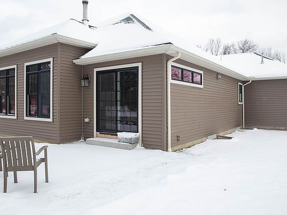 Supra on front. The Villa's of Macy Lane is a Planned Unit Development. HOA information is in the supplements. New Construction. Custom built by Dino Costello. Vinyl sided with sandstone accents, Anderson windows. Premium features include a plush fully finished 13 course basement, an oversized recreation room, two bedrooms, and even a vented cigar room, that is easily adapted to a Theater room. There is custom carpet, custom moldings, and special lighting. The oak cigar/theater room door and sidelight are custom made. The 1st floor greatroom has a raised hearth woodburning sandstone fireplace, and 10' ceilings. The custom kitchen includes Quartz counters, two pantries, a plumbed 1st floor laundry area, and a 9' X 4' island breakfast bar. The heated triple garage has two drains, H & C water, "Lift Master" door openers. Reserve Balance for Macy Lane HOA is approximately $32,000. There are monitoring devices on the premises. LAWN & LANDSCAPING ARE INCLUDED, Taxes are setimated for 2024, based on similar properties.