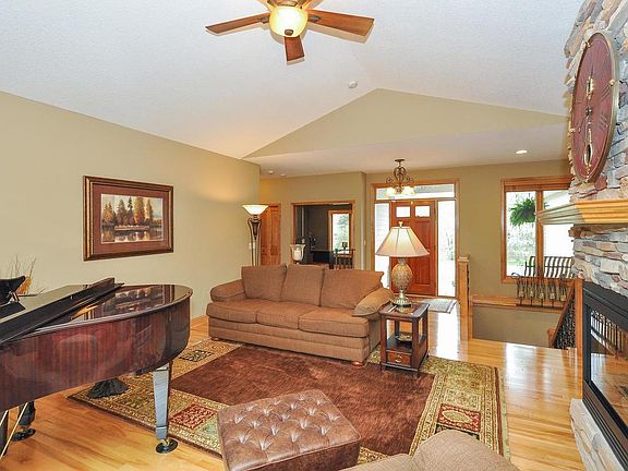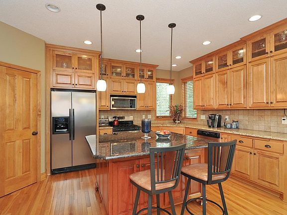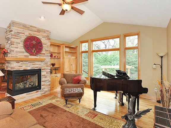 Beautiful One Story will WOW you the minute you walk in. Gleaming Red Birch hardwood floors & stone, 3-sided fireplace. Gourmet Kitchen with maple cabinetry, center island, & stainless steel appliances. Master Suite has walk-in closet & private bath with jetted tub. Spacious Family Room offers stone fireplace, built-in hickory cabinetry, & huge Wet Bar with granite counters & slate floor. Awesome outdoor Kitchen & huge fireplace. See pics & detailed supp. Serious seller - fast possession!