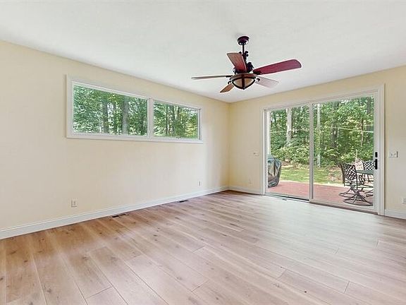 Serene wooded backyardWide plank hardwood flooringGenerous primary suiteSpacious deck