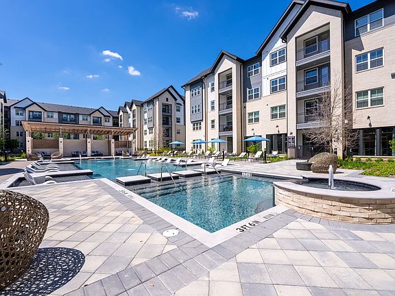 - Exterior features: , 24/7 Emergency Maintenance, Air Conditioned Corridors, Barbecue, Business Center, Clubroom, EV Charger Ready, Free Weights, Garden, Golf Simulator, High-speed Internet Ready, Hospitality bar, On-Site Maintenance, On-Site Management, Online Rent Payment, Package Receiving, Pet Park, Private co-working offices, Private one & two car garages, Relaxing spa-like soaking tub, TV Lounge, View Type: Treeline View, Wi-Fi throughout community common areas, Yoga & Stretching