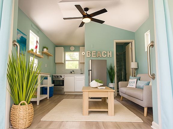 Available as 6 or 12 month furnished rental ! Discover your private oasis at our charming studio cottage in Gulfport, located in the famous Gulfport Arts District. This standalone retreat blends modern amenities with serene surroundings, offering a perfect escape in a peaceful complex near Beach Blvd. Step inside to find a beautifully remodeled kitchen and bathroom, and unwind with a 65-inch flat-screen TV equipped with Roku for all your entertainment needs.