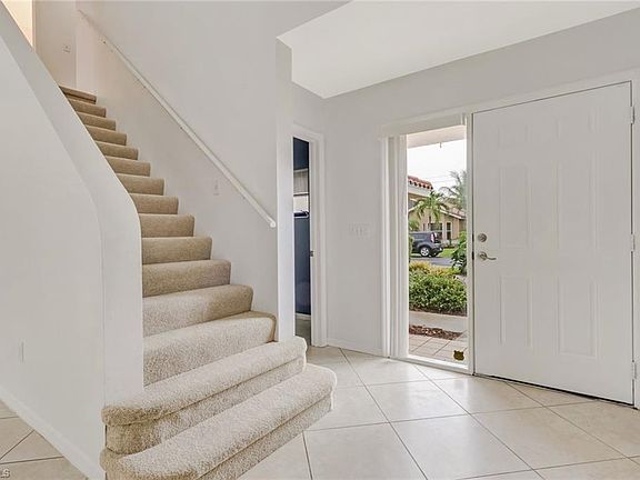 This Moon Lake 2-story home boasts brand new roof and carpeting (stairs and upstairs) in April, new stove, washer, dryer, blinds (master and great room). PLUS New A/C to be installed by mid-September. The Great Room tiled, fireplace, cathedral ceiling. 1st floor Master with spacious bath. Large caged pool area affords outdoor relaxation and entertaining. Convenient L-shaped kitchen with granite, window above sink, plenty of cabinet space, including double "pantry" closet and eating area. Off the kitchen is the laundry room with a tub. The garage is floored in Mexican tile and has storage area. This one-of-a kind 2-story in Moon Lake is ideal in space and convenience and its location puts you within 3 miles of Old Naples' celebrated shopping, dining and beaches! So much is NEW! MAKE THIS HOUSE YOUR HOME!