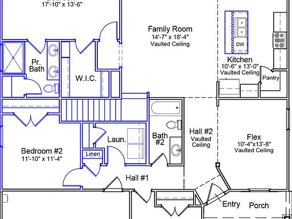 Are you looking to downsize or searching for a one-level ranch-style home? The Carson plan is the home for you! This completed home includes a fenced-in backyard, a screened porch, and more privacy, as there are no neighbors behind or to the side of this home. The Carson plan features three bedrooms, a bonus room that can be a fourth bedroom, two bathrooms, a vaulted entrance, and a flex room with a high vaulted ceiling that can be used as a dining room. The spacious great room has a high vaulted ceiling that opens to the kitchen and eat-in area. The kitchen offers a gas self-cleaning oven, a tile backsplash, and a stainless steel refrigerator. The primary bedroom, two additional bedrooms, a full bath, and a laundry room are all on the main level. The primary bedroom has a walk-in closet, double vanity, and five-foot tiled shower. Upstairs boasts a large room space that can be a bonus room or fourth bedroom. Don't miss this home!