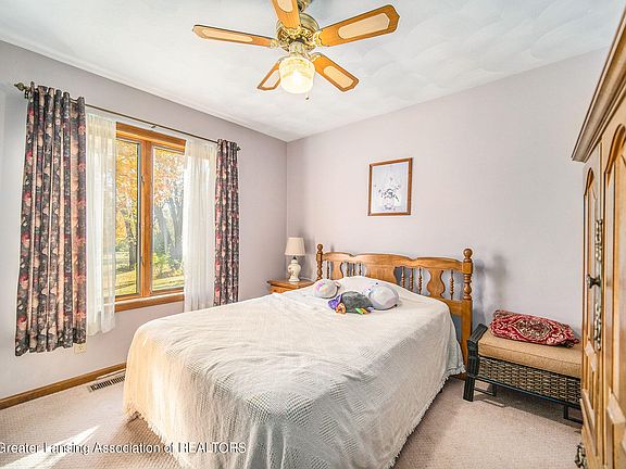 Welcome to 5027 Nixon Rd, a sprawling ranch style home that has plenty of space for its new buyer! Sitting prominently upon over 8 acres of land, this 4+ bedroom, 2 full bath home has everything you're looking for! Main level features include: a nice sized kitchen with stainless steel appliances, plenty of cupboard space, a large breakfast nook just off from the kitchen with sliding glass doors heading to the back deck, pantry cupboard space, a HUGE formal dining area, a cozy living room with Anderson windows, and a foyer area leading out the front door. There are 4 total first floor bedrooms, with one that is currently being used as a laundry room but can easily be converted back. The primary suite has a walk in closet and a full bathroom as well. Downstairs, there are a TON of possibilities! A massive finished "rec room" awaits along with 2 finished "bonus" spaces. A walkout sliding door leads you to the backyard. There is also tons of area for your storage potential downstairs. 2012 Carrier furnace, poured foundation walls, laundry hookups, 150 amp electrical service and space for days! Outside, you'll enjoy the rolling hill scenery. You can enjoy wildlife and/or hunt right from the comfort of your own property! Other amenities include: a nice sized deck off the back of the home, a newer roof, 2x6 construction, a huge central air unit, Charlotte schools, Dimondale address, and Windsor Twp lower taxes! Schedule your showing TODAY!