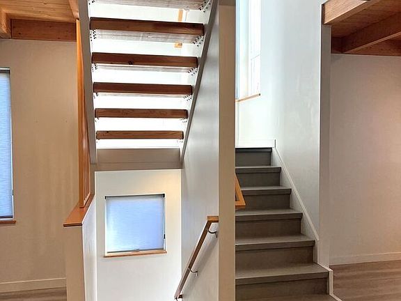Situated in the sought-after area of Mt Tabor/Hawthorne, this home offers spacious interiors flooded with natural light. On the main floor, you'll find the kitchen, living room, and a convenient half bath. The kitchen is adorned with quartz countertops, wooden cabinets, a stylish tile backsplash, and a stainless steel appliance package. Upstairs, there are two bedrooms and a full bathroom, while the top level boasts the expansive open-concept primary suite with a beautiful full bathroom and stunning aerial views of the neighborhood.