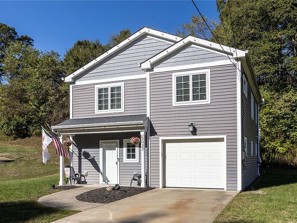 Welcome to 5027 Thoms Run Road. This is a 2013, custom-built home, on a large level lot, almost one acre. Open concept living, dining, and kitchen area. Quality throughout featuring cork flooring and white oak hardwood. Custom Amish cabinets with quartz countertops in kitchen and bathrooms. Ground-level entry invites you into the lower level, where you will find a half bathroom, laundry room, and a large game room or 3rd bedroom, and a storage room. The upper level is the main living area. Open concept living, dining and a bright, updated kitchen. 2 spacious bedrooms and a full bathroom complete the upper level. The porch off the kitchen is facing the woods in the back of the property, creating the utmost privacy! This home is in pristine condition and is built on a slab; there is no underground basement. Far from neighbors, a lot of privacy and ample off street parking plus a 1 car garage. Do not miss this 12-year old home! Seller is willing to sell all contents.