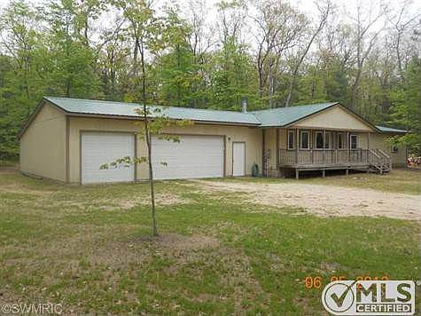 Calling all outdoorsmen! Newer home built in 1999 on 20 acres with Knutson Creek running through it. This home has 4 bedrooms, 2 full baths, over 1,500 square feet, and a 3 stall attached garage. There is also a bonus room off the back for a workshop or extra storage. You'll also find a newer metal roof, and outdoor wood boiler for inexpensive year round comfort. Property is mainly wooded, and directly across the street from hundreds of acres of the Manistee National Forest. Home has fresh paint, open floor plan, and ready to move into! Brokered And Advertised By: RE/MAX Muskegon Listing Agent: Rob Stark