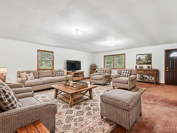 This home gets your attention, and the property grabs your heart! Tucked away on 6.62 scenic acres in beautiful Bath Township just outside Fairborn, this charming 3-bedroom, 2-bath ranch offers privacy, simplicity, and endless potential. A long Spruce-lined driveway sets the tone as it winds back from the road, creating a peaceful and private retreat. The home features a spacious great room that flows into a large eat-in kitchen—perfect for everyday living and entertaining. One of the bedrooms includes an en-suite bathroom, adding convenience to the comfortable layout. But it’s the land that truly captures your heart. With just a bit of fencing, this property could easily transform into a mini-farm, hobby homestead, or horse setup. Two well-equipped pole barns add even more appeal—one is 30x40 with concrete floors and 220 electric, while the other is 24x40 with both water and electricity. The property also includes a long list of recent improvements: interior paint (2025), exterior paint (2024), driveway sealed (2023), new furnace and thermostat (2022), new exterior and storm doors (2019), hot water heater (2018), new gutters and downspouts (2018), roof replacement (2016), and a beautifully updated kitchen with granite countertops (2014), main bath remodel (2014). If you’ve been looking for a home with room to breathe and a world of possibilities, this one is sure to get your attention—and steal your heart. Back on the market because buyers are breaking up. No issue found with property during buyers inspection!