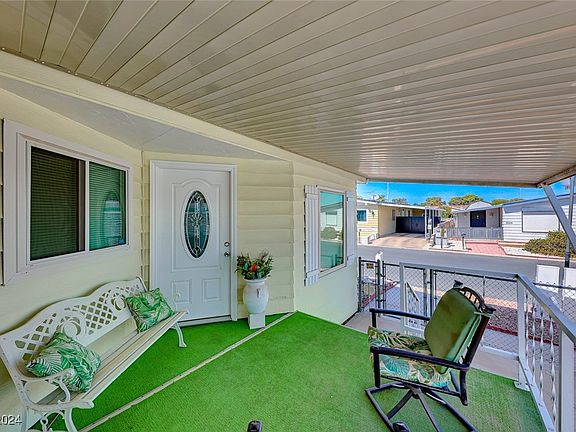 Wonderfully Maintained Oversized Double Wide Mobile Home in 55+ Community - Converted to Real Property So You Own The Land As Well! True Pride Of Ownership As This Home Is Clean & Well Cared For. Long Carport That Can Fit 2 Cars & Front Side Gated W/ Spacious Covered Patio To Enjoy Coffee Outside In The Mornings. Pristine Carpet & Matching Wood Laminate Flooring Throughout Plus Plenty Of Windows For Natural Lighting. Upon Entry You Are Greeted Into The Expansive Living Room W/ Adequate Space For Seating & Office If Desired As Well As Space For Formal Dining Room. Large Kitchen W/ Tons of Storage Space, Built-in Oven & Cooktop. Breakfast Nook & Dining Room W/ Access To Private Sun Room. Primary Bedroom W/ Mirrored Closet Doors & Private En-Suite Featuring Double Sinks & Vanities As Well As Separate Tub & Shower. Fully Fenced Backyard W/ Separate Storage Shed & Easy To Maintain Artificial Turf W/ Pavers. Community Offers Large Pool, Indoor Jacuzzi, Golf Putting & Walking Trails.