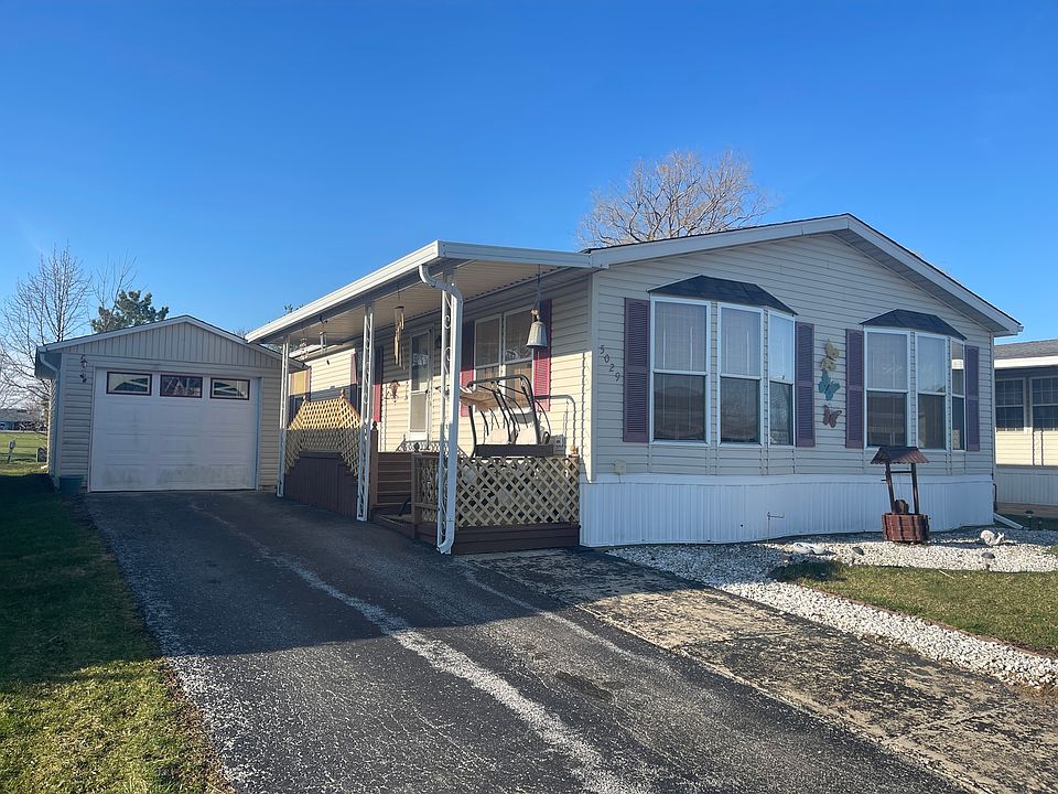 Golf Vista is an 55 and older age-restricted Community. This means one of the primary residents has to be 55 or older. 28' X 44' Carrollton with 1 car garage. Huge double floor to ceiling walk-a-bay windows with 3 windows each. New master vanity. A new roof was just put on the home! Newer A/C, newer washer November, newer screens,newer blinds, and newer carpet and tile in kitchen. Shed and deck in the rear of the home. Newer American Standard a/c unit. Lowest price 3 bedroom 2 bath home in Golf Vista Estates. The office has to approve you. One car and covered awning for "up and over steps" at the front entrance. All appliances included. Home is sold as-is condition however it did pass Village of Monee inspection so we will have a certificate of occupancy from the village which is required.