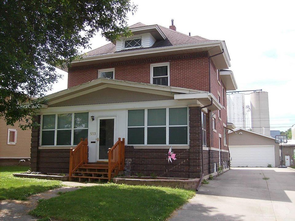 This is a nice 2 story brick home with original woodwork, hardwood floors and leaded glass windows. There are 3 nice bedrooms upstairs, a den/office on the main floor and a sunroom on the second floor. The backyard is fenced with newer chain link. There is a very nice 30' x 24' oversized garage with lots of room for vehicles and storage. Priced under assessed value!