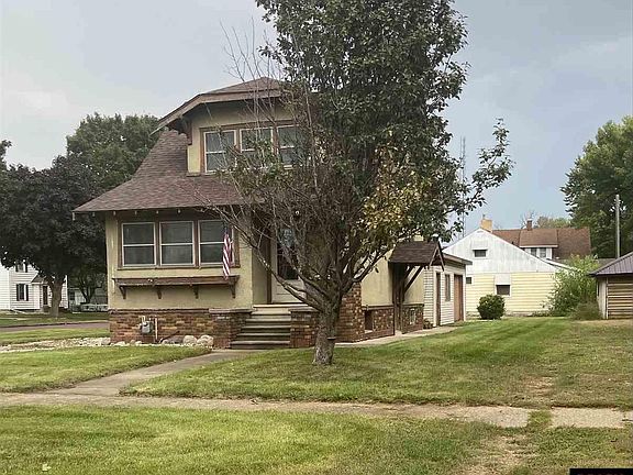 This is a very nice home located on a spacious, shady, corner lot within walking distance to downtown. Featuring spacious kitchen with newer oak cabinets & newer flooring, formal dining room, living room & den all with hardwood floors and neat varnished woodwork. The upstairs consists of two nice sized bedrooms & remodeled full bath. There is a full basement with new full bath with tub/shower, finished laundry area, newer energy efficient furnace with central air, circuit breaker electrical. The attic has had 12” of insulation added. There is a 2 ½ stall garage to the back of lot. This home has lots of charm & character and is truly a must see!