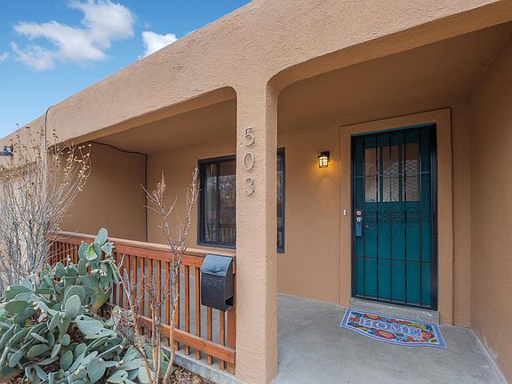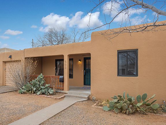 Charming 2BR Pueblo Revival 5 Blocks from ABQ's Vibrant Nob Hill! Built well in 1948, 503 Sucessfully Ties Vintage Charm to Modern Upgrades! Thermal Windows, Coved Ceilings, Custom Fireplace, Hardwood Floors, Gallery Lighting, Lacquered Kitchen Cabinets, Stainless Appliances and Spotless Clean! The Remodeled Bathroom Boasts an Oversized Porcelain Tub, Dual Showers, Gorgeous Floors and Fixtures! Refrigerated Air, CFA Heat, Large Private Backyard with an Open Patio, Custom Gates and Alley Access Too! Enjoy the Sitting Porch, Relax By The Fire or Join the Crowds at Nob Hill's Premier Dining & Shops! We love 503 for it's Location, Condition & Beautiful Views of the NM Skies & Sandia Mountains from the Large Picture Windows. Convenient to KAFB, Nob Hill, UNM, CNM, Downtown & Sunport!
