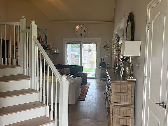 This home is in beautiful Knob Hill. It has 4 bedrooms and 2.5 baths. The Master is downstairs and other 3 bedrooms are up. The downstairs has an open floor plan with hardwoods throughout. The kitchen has a large island with quartz countertops and backsplash. The kitchen opens up to the living room with gas fireplace. From the kitchen and living room you can see the views of the gorgeous backyard.