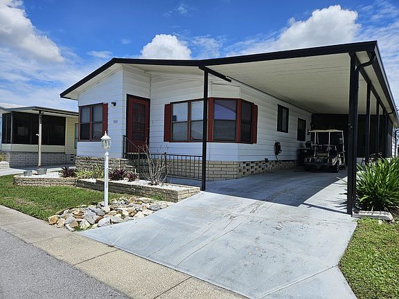 This is a 55+,lot-lease,Pet friendly community with plenty of amenities and activities. Beautifully maintained spacious fully furnished 2 bedroom 2 bath home/ granite kitchen/updated floors/walk in shower/soak tub/Central AC 2023/covered 2 car-carport/screen in lanai! -MUST SEE!