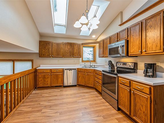 Meticulously maintained multi-level home with several updates and an open floor plan. The foyer opens to a vaulted ceiling with a décor ledge that leads to a large kitchen that boasts skylights and stainless steel appliances that are like new! Right off the dining room there is an atrium door that goes out to a stamped patio and fenced in yard. The master bedroom has an updated bath and walk-in closet, The finished lower level is perfect for a for a non-conforming bedroom with a custom closet, game room, or office! The interior of the attached garage has a fresh coat of paint and has updated lighting!