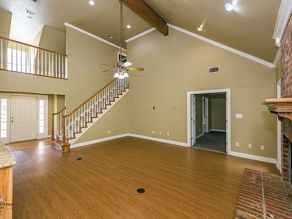 Corner lot with 1.32 Acres. Open floorplan. Granite in kitchen with plenty of cabinets & a long breakfast bar. Downstairs remote primary bedroom. There are 2 more bedrooms downstairs. Upstairs you will find another bedroom & an additional room without a closet. The outside features a cyclone fenced back yard, an uncovered deck and a large side yard. There is also a shed on the property that is good for storage, and it is bigger than it looks.