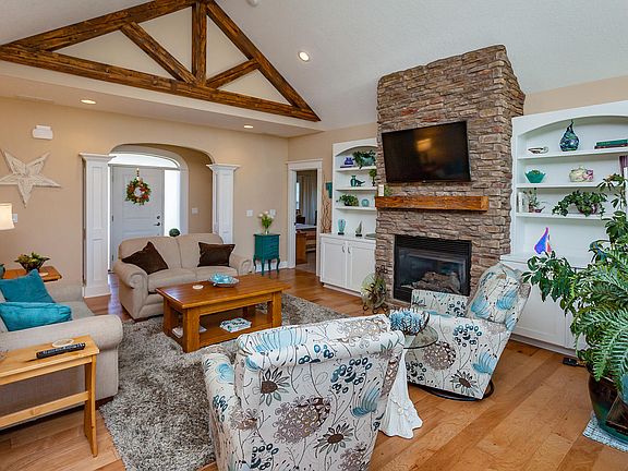 Absolutely stunning 4BR, 3.5 custom built walkout ranch on nearly 1 acre. The list of ''extra'' features in this home is long: vaulted ceilings, wood beams (from 100 year old barn), loads of south-facing windows, Bertch cabinetry, granite counters spacious master bedroom suite with jetted tub, tiled walk-in shower, huge laundry, formal dining room, finished walkout lower level with kitchenette. The back of home is flanked with floor to ceilings windows, 2 composite decks, covered deck, 4 season room, professionally landscaped yard complete with outdoor fireplace and water feature. The garage is a ''garage lover's'' dream, with over 1200 sq. feet, third stall is oversized, insulated and heated complete with 1/2 bath. Private drive. It's exquisite and won't last long!
