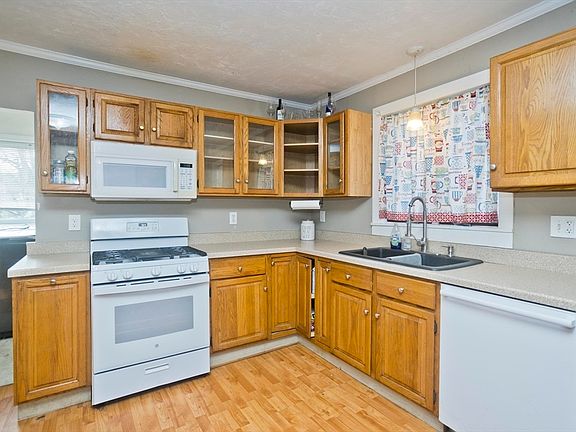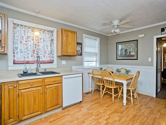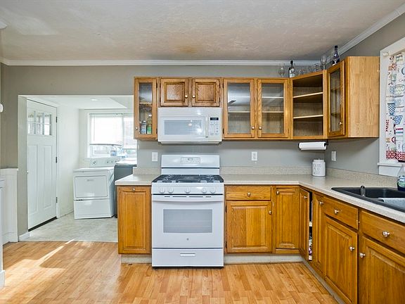 Welcome home to this charming 3-bedroom, 2-bath bungalow just waiting for its new owner! You'll love the kitchen with its oak cabinets and plenty of counter space, perfect for cooking up your favorite meals. And guess what? All the appliances stay, making move-in day a breeze! Convenience is key here with a mudroom at the back entrance and laundry on the first floor, along with a full bathroom. Upstairs, you'll find two cozy bedrooms with beautiful wood flooring and another bath with a shower. Plus, don't forget to relax on the large enclosed front porch, adding even more to your living space. This home also boasts newer cellar windows and a fenced-in yard complete with a spacious deck out back. Imagine the fun you'll have in your private backyard. With its convenient location, this home won't last long. Schedule your showing today and make this your new home sweet home!