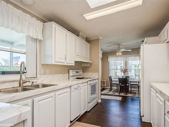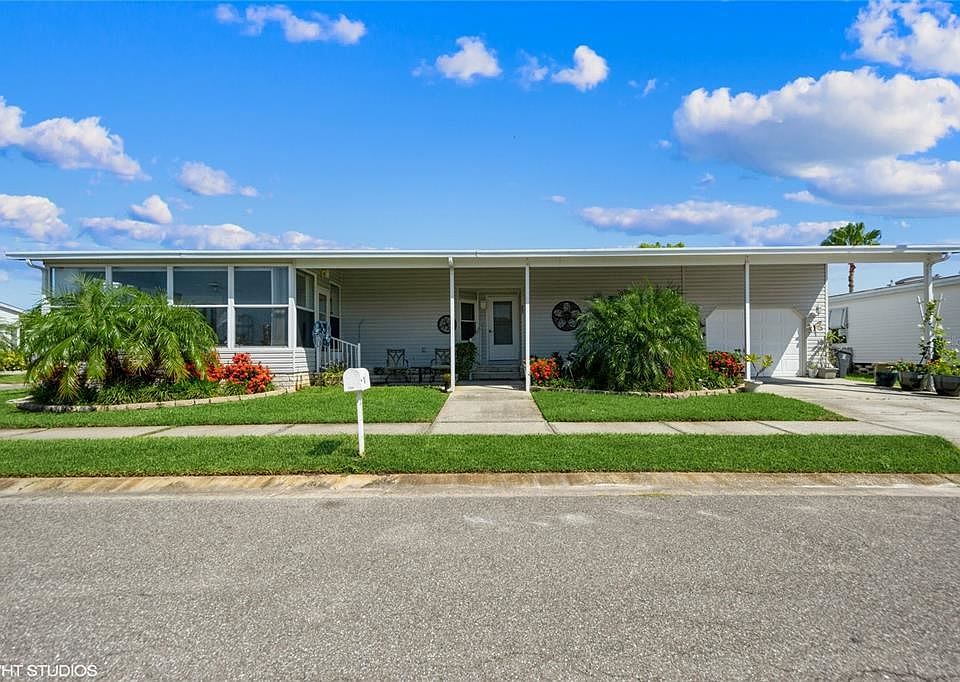Beautiful 1998 Jacobsen built to newer standards. Desirable corner location in the newer section of Gull Aire Village. Spacious 1446 square feet with three bedrooms and two baths. Split bedroom plan. Large eat-in kitchen with built-in desk and huge pantry. Wonderful 11x18 glass enclosed, air conditioned and heated Florida room is at the same level as the home so there are no stairs. It is not included in the 1446 square feet of living area. New slider takes you from the kitchen to the Florida room. Perfect for entertaining. New windows installed in 2020 in the main home. Inside laundry. The garage is oversized and would be perfect for workshop or hobby area. Carport too! Gull-Aire Village is an active 55+ community and offers clubhouse, library, shuffleboard, Bocce ball court, and large heated pool & spa. Golf cart friendly. HOA is $50.00 per month. One pet- any size. You own your own land. You can walk to AMC Theatres, Beall's, Marshall's, Pet Smart and Dollar Store. Restaurants within walking distance include Shaker and Peel, Craft Street Kitchen and Eve's Family Restaurant. Just minutes to Westfield Mall, Walmart, Publix and Countryside Hospital. About 20 minutes to the beautiful beaches of Honeymoon Island and Caladesi State Parks. Room sizes are approximate and to be verified by Buyer. This is a lovely home. Don't wait""won't last.