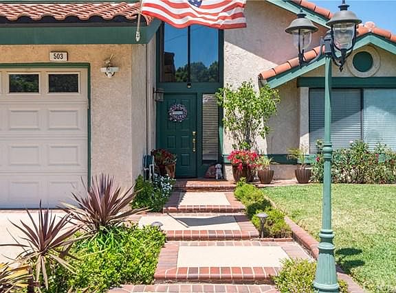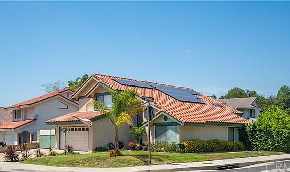 This gorgeous home has everything you're heart has ever dreamed of! It is located on a corner lot, with great curb appeal, in the beautiful city of San Dimas. There is a brick walk way that leads to a cozy front porch. Inside you will fine a large entry way that overlooks a very good sized living room with vaulted ceilings, beautiful wood flooring and a window overlooking the front yard. Next you will find the dining room, which has wood flooring, high ceilings and a sliding glass door leading out to the backyard. The kitchen comes next, which is really a "great room" in combination with the family room. Kitchen has tile flooring, high ceilings, a skylight, garden window, recessed lighting, caesar stone countertops, built in 5 burner range, instant hot water and counter top seating. This is connected to the family room which has tile flooring, another small dining area, cozy fireplace and slider leading to the backyard. There are also a good sized bedroom, full bath and laundry room downstairs. Upstairs is the large master bedroom with double door entry, high ceilings and an unbelievably beautiful master bathroom w/walk-in closet. Master bath is all custom - shower is 96" x 42" and has 3 shower heads, 2 hand showers, seating, grab bar and tub spout (take a look at the photos, words won't do it justice). The third and fourth bedroom share a full bath. This home is very light and bright with fresh paint, colonial doors and upgrades throughout. Garage is attached and has a work bench, cabinets and overhead storage. Driveway is large and fits 3 cars across. Backyard is beautiful with above ground jacuzzi, covered patio, artificial grass with putting green, huge, gated RV parking and storage shed on the side. **PAID OFF SOLAR PANELS!** Seller says electric bill is only around $20 per month. **ROOF IS ONLY ONE YEAR OLD** HOA amenities include pool, spa, club house, common RV parking, horse stable for 2 horses and riding ring. Located in the very desirable Bonita School District. Close to everything - Schools, colleges, parks, Raging Waters, Bonelli Park, walking and horse trails, great freeway access. Run, don't walk! This one won't last!