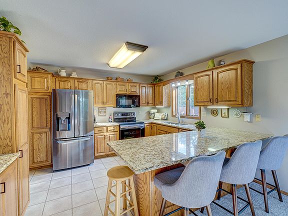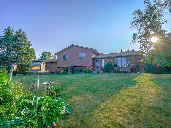 Nestled amidst a tranquil setting, this property offers an idyllic retreat on over 2 acres of land adorned w/majestic pines, ensuring privacy. This charming multi-level offers many gardens & perennial plants as well as a large deck to enjoy the wildlife & the hot tub. Boasting a thoughtfully designed layout, the home encompasses 3 beds on a single level. The main level impresses w/an open concept, creating a seamless flow throughout the living space. The kitchen shines w/new appliances & updated countertops. A family room on the 3rd level is complete w/a cozy gas fireplace & a bar area. The unfinished basement presents ample storage options, plus room for an office, crafts, or exercise. The residence features a utility shed in the backyard. With its serene surroundings, desirable amenities & convenient location close to I-94 & nearby stores & restaurants, this property harmoniously blends comfort & style, promising a peaceful and fulfilling lifestyle.