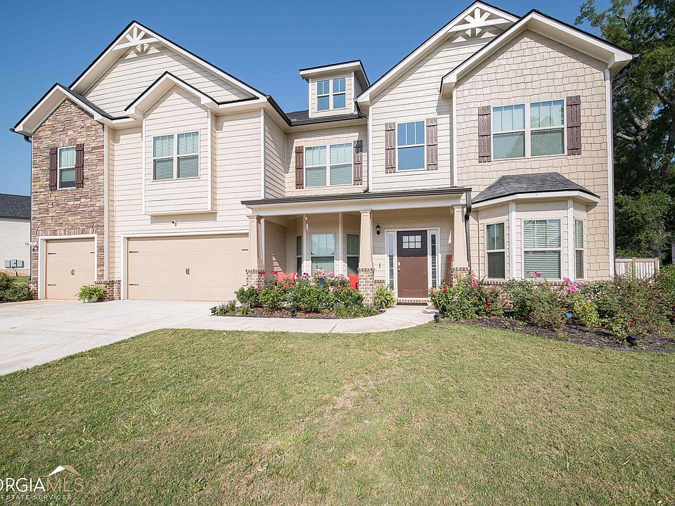 Experience luxury living in this exquisite one-year young home nestled on a sprawling 0.85-acre lot. From the moment you step into the impressive 2-story foyer, you'll be enchanted by the grandeur this residence offers. The great room, adorned with a cozy fireplace, seamlessly flows into the extra-large kitchen, complete with a delightful keeping room and top-of-the-line stainless steel appliances. Granite counters, a wall-oven, microwave, and dishwasher add a touch of sophistication. Perfect for entertaining, the kitchen island with a breakfast bar is a delightful gathering spot. Beyond the main living areas lies a separate living/office space, as well as a formal dining room boasting elegant, coffered ceilings. One guest suite is conveniently located on the main floor, providing privacy and comfort for your visitors. Upstairs, an opulent owner's suite awaits, featuring a cozy sitting area, an impressively spacious walk-in closet, a luxurious tub, a separate tile shower, dual vanities, and fine tile flooring. Three additional bedrooms and two baths ensure ample space for everyone. The upper level also boasts a large laundry room with a utility sink, offering practicality and convenience. For your leisure and entertainment, there's a versatile loft and a media room with a kitchen which can also be used as a man cave. Car enthusiasts will appreciate the three-car garage, while a fenced yard ensures privacy and security. Retreat outdoors to the covered extra-large screened-in patio, complete with a charming outdoor fireplace. Conveniently located a mere 20 minutes from Robins AFB, this exceptional property is an absolute must-see. Impeccably maintained and better than new, this home epitomizes elegance and luxury living. ***Assumable VA loan at 3.37% rate***