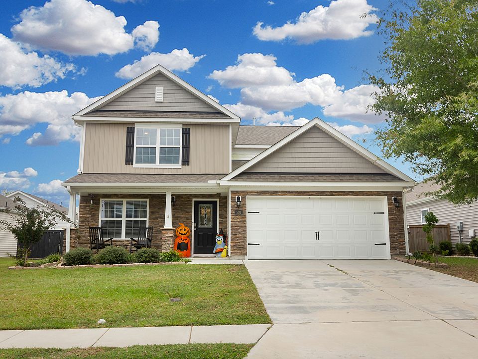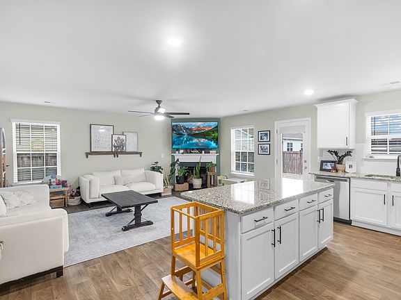 This 4-bedroom, 2.5-bathroom home is located in the desirable Lake Tyler community with access to a pool, playground, and walking trails. The first floor features an open layout with luxury vinyl flooring, a stylish kitchen with granite countertops, tile backsplash, stainless steel appliances, and a large island. The primary suite is on the main floor with a walk-in closet and spa-like bath, while upstairs offers a loft, bonus room, two additional bedrooms with walk-in closets, and laundry room. Outside, enjoy a covered front porch, extended patio, and a spacious backyard with room for boat storage.