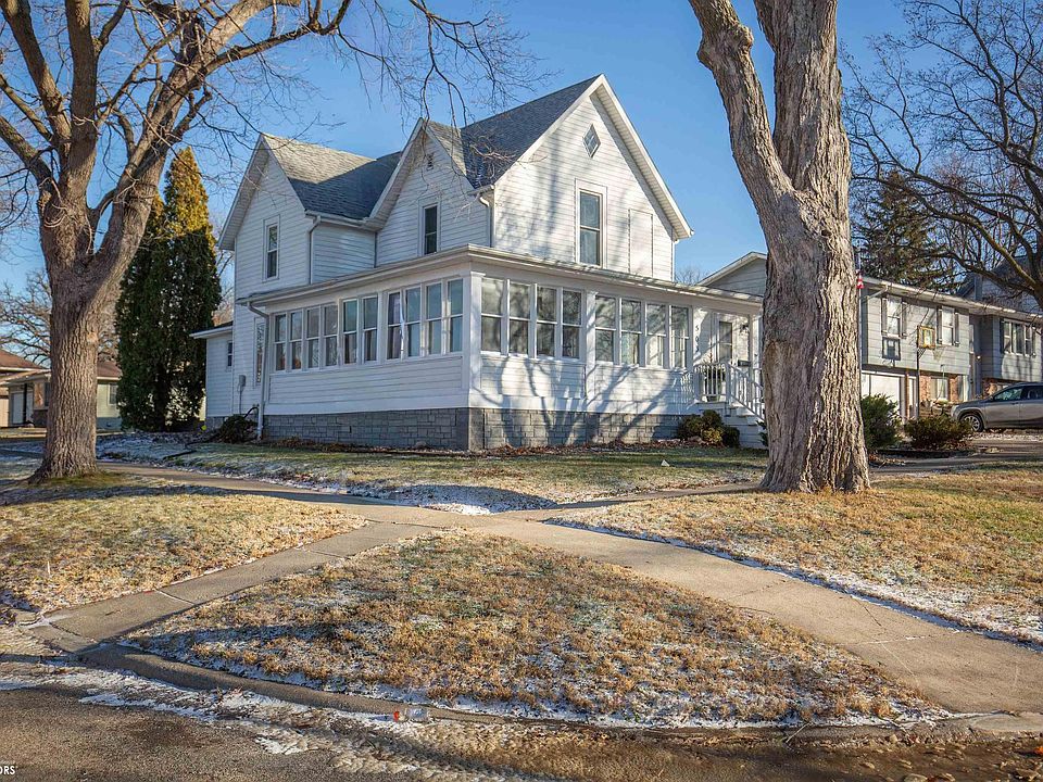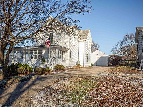 Discover this charming 3-bedroom, 1.5-bath home located in the heart of Algona—just a few blocks from the public library, two parks, and an easy walk to downtown. Situated on a corner lot in a quiet neighborhood, this inviting two-story offers mature shade trees and a welcoming wrap-around three-season porch, perfect for morning coffee, peaceful evenings, and spending time with loved ones. Inside, the main level features a spacious eat-in kitchen, a formal dining room, a comfortable family room, and an office/den complete with a cozy electric fireplace. All three bedrooms are located upstairs along with the beautifully updated 3/4 bath, boasting a large vanity, hexagon tile flooring, a walk-in tile shower with glass enclosure, and a luxurious towel warmer. This home has seen numerous updates over the years, including professional resurfacing of the stairway and upstairs walls, installation of dual mini-split heat/AC units, porch remodel, newer shingles, refrigerator and stove, and significant structural and efficiency improvements such as added foundation support beams (Thrasher), insulated and sealed basement (Thrasher/Fehr Masonry), new basement toilet, new sewer line to city connection, addition of sump pump (Algona Plumbing & Heating), and more. Don’t miss your chance to make this beautifully maintained home your own. Schedule a showing today and experience the charm and comfort this property has to offer.