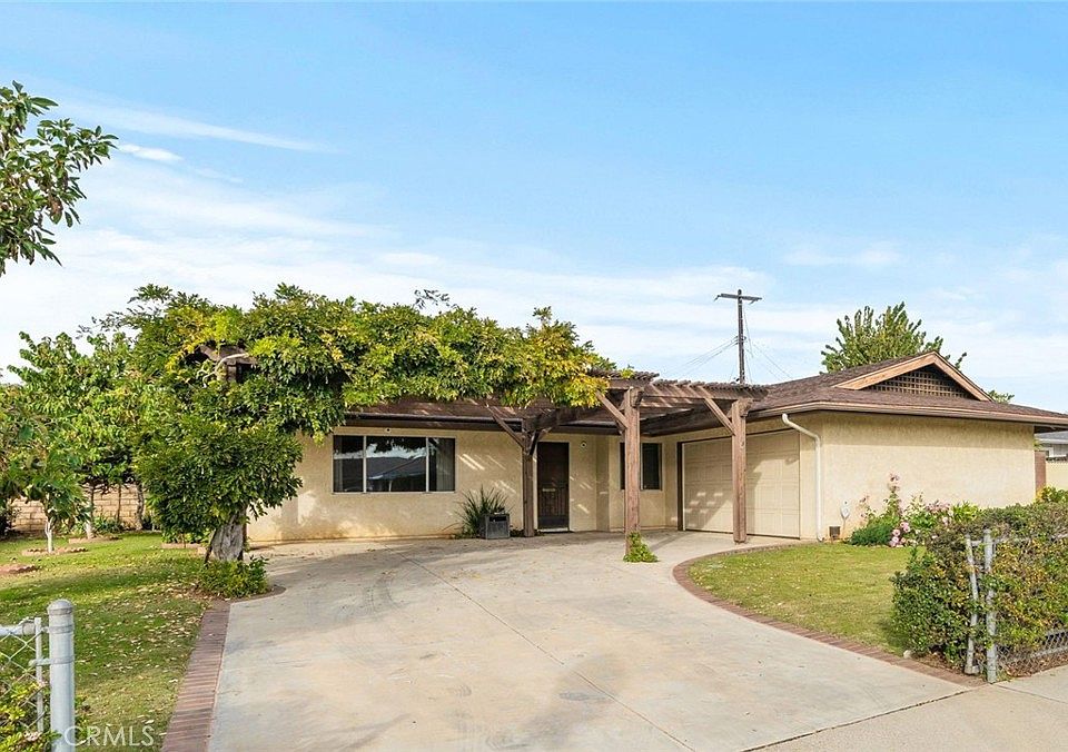 Three bedroom family home located in quiet San Dimas neighborhood close to downtown San Dimas, schools, library, and parks. This single-story corner lot home features formal living room with brick fireplace, open kitchen with center island, dining area with slider door to outside covered patio, primary bedroom with mirrored closet doors and slider door to covered patio, primary bathroom with shower, two secondary bedrooms, a spacious full hallway bathroom with bathtub and shower, and inside laundry room with storage. Two car attached garage. Covered patio with spacious back yard with lawn area, covered patio, and storage shed. This home is a wonderful opportunity to buy in a desirable San Dimas neighborhood.