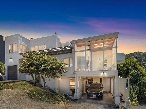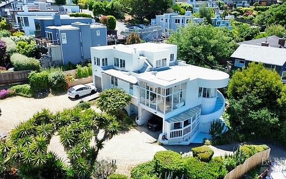 Incredible opportunity! Showings available each week with 24-hour notice. Please do not drive or walk up private driveway. Unique opportunity to own this iconic, Bohemian style Sausalito home with beautiful views to the Sausalito Harbor, Mt Tam, and the Tiburon ridgeline. The main home is 3 bedrooms with bright and stunning views from the glass enclosed atrium, living room, and round en-suite bedroom. A large dining room and kitchen flow out to a private rear deck. The home is surrounded by natural beauty and has the feeling of a hillside in Greece with pathways and flowering greenery. Two additional one bedroom apartments (permitted and on tax records), each with separate private outdoor spaces, create the perfect extended family living, retreat for guests, or excellent rental income with flexibility on best use. The upper apartment has BIG views of the water and Mt Tam, and an enclosed patio area. The lower charming garden apartment has two small private decks. All spaces have had updates. Total of 4-5 car parking and two laundry facilities. The property has been within the same family for over 25 years and stands out with its eclectic flair. This is a special property ready for its next owner. See also Single Fam Res MLS #325080248. Square footage from Floor Plan Visuals.