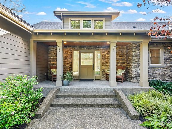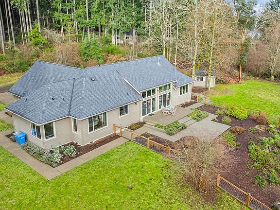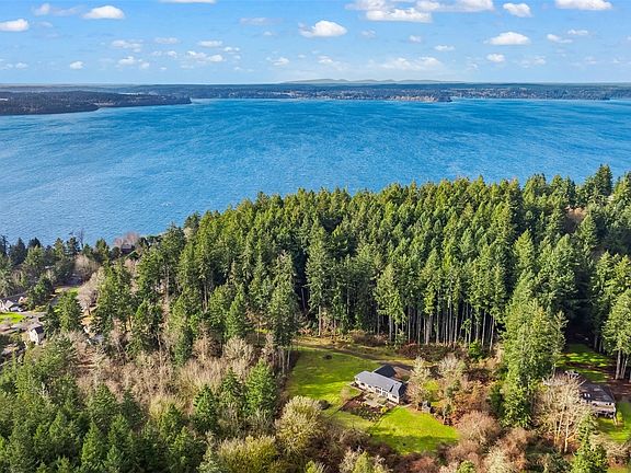 Welcome to a stunning 1-level home on a shy 5-acre lot, offering ultimate privacy & tranquility. Escape to coveted Fox Island, where the pace is slower & community is friendly. This great room floorplan showcases a beautiful huge quartz kitchen island w/Thermador cooktop & double ovens, vaulted ceilings, a wall of floor-to-ceiling wall of windows complimented by a gas fireplace with close-up views of nature at its best. The primary bedroom provides serenity, positioned separately from the other two bedrooms. Imagine outdoor gatherings on an expansive patio + a fenced backyard. Plenty of room for an ADU! Minutes to the Fox Island Bridge, community center, tennis courts, beaches & museum. Meet up with friends at Zogs, the neighborhood bar.