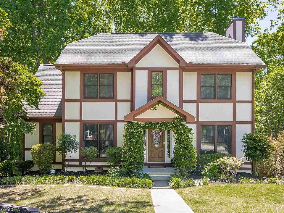Seller calling for highest and best offers by 4pm Sunday May 9th. Charming French Tudor style home nestled on a half acre wooded lot with a winding creek and statuesque hardwood trees in the backyard. The home consists of 3 bedrooms and 2.5 baths and an unfinished basement. Kitchen has been updated with stainless steel appliances (stove, microwave, dishwasher, & refrigerator), granite countertops, farmhouse sink and faucet, newly painted cabinets & subway tile backsplash. Kitchen is open to a breakfast room and walk-in laundry room with plenty of storage and extra pantry space. Living room opens up to the upper-level deck area; perfect for grilling. Living room also features a new stone fireplace mantle and new tile on the fireplace surround. Flooring has been upgraded to top-grade hand-scrapped laminate floors in living room, dining room, downstairs hallway, & upstairs hallway. New tile and granite countertops have been added to the main level half bathroom. Large master on second with walk-in closet. The master bath features dual sinks, a separate shower and garden tub. New water heater (2017). Smart ecobee thermostat added. The basement boasts of a hidden temperature and humidity controlled wine cellar. The basement also has a large unfinished room, and an attached 2 car garage. Two tier deck overlooking the private backyard. The neighborhood has a picnic shelter and playground. The neighborhood hosts activities throughout the year at the neighborhood park. This home is minutes away from the interstate, shops, grocery stores, restaurants and Heritage Park. Fantastic schools!