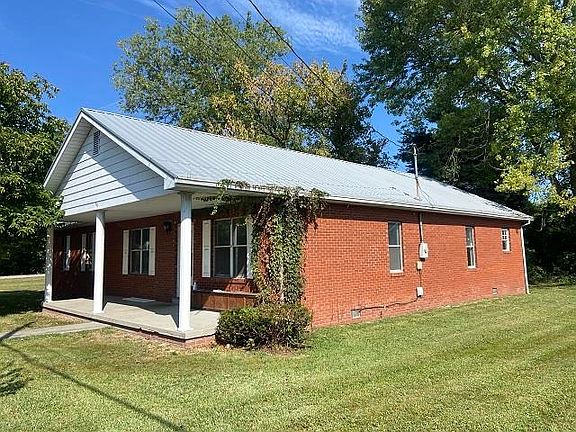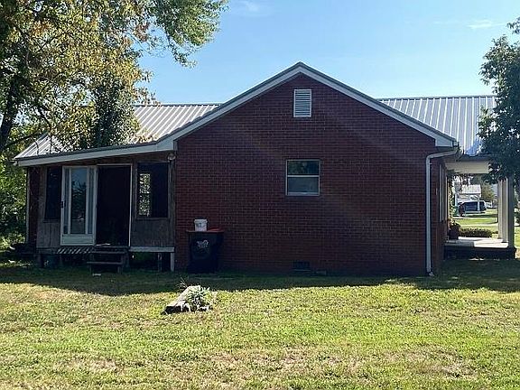 This is a ranch brick home with metal roof and great potential. Located on a corner level lot. Interior needs some updates but a nice floor plan, lot to the right of home does not go with the property.