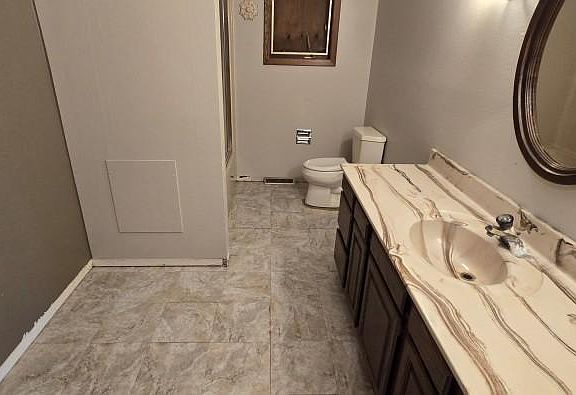 Welcome to this inviting home featuring 2 main-level bedrooms and 1 full bathroom, perfect for comfortable everyday living. The open great room with a gas fireplace creates a cozy gathering space, while the fenced yard and stamped concrete patio provide a private retreat for outdoor enjoyment. The basement adds flexibility with space for 2 additional bedrooms, a living area, bathroom, and laundry. The attached 2-car garage includes a generous storage room with built-in shelving. This home is being sold as-is, where-is, offering a fantastic opportunity to make it your own.