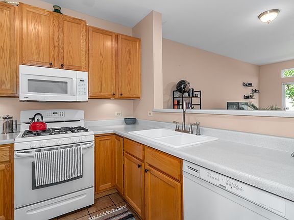Get ready to fall in love with this super cute townhome in Kingsbrook Crossing! This home has been lovingly maintained and features neutral paint throughout, updated lighting and flooring (NO CARPET ANYWHERE) and on trend remodeled staircase - Gorgeous espresso with white spindles! NEW FURNACE & NEW A/C in 2020! You will appreciate the open floor plan, spacious master suite with high volume ceilings, private bath and dual closets! Bright sunny kitchen with 42" uppers has bar seating and opens to the family room. Enjoy summer nights on the large private patio overlooking a scenic common area. District 308 schools and close to shopping, dining and parks! This home is truly move in ready and a must see!