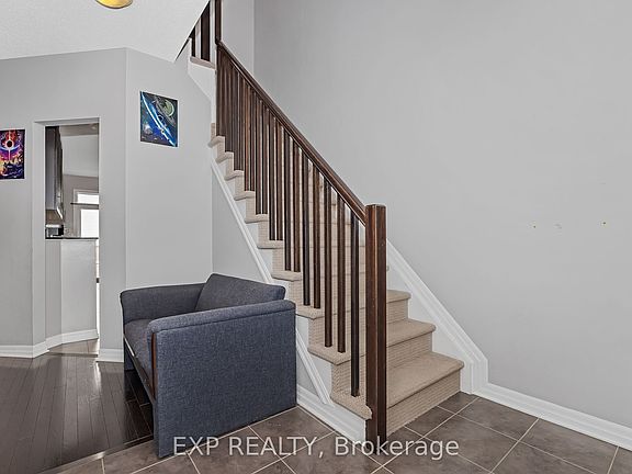 Welcome to this beautifully upgraded 3-bedroom, 3-bath Claridge townhome, offering over 1,920 sq. ft. of stylish living space in the heart of the Mer Bleu Conservation Area. Backing onto scenic trails and just minutes from schools, shopping, and family-friendly amenities, this home combines nature and convenience seamlessly. Step into a bright, open-concept main floor featuring gleaming hardwood floors and a spacious living and dining area ideal for entertaining. The modern eat-in kitchen boasts upgraded cabinetry, granite countertops, stainless steel appliances, and a striking tile backsplash. Upstairs, you'll find a generous primary suite complete with a massive walk-in closet and a private 4-piece ensuite. Two additional bedrooms and a full bath offer space and flexibility for growing families or guests. Convenient second-floor laundry makes day-to-day living effortless. Unlike standard models, this home was customized by the builder to include a massive fully finished basement, perfect as a home gym, playroom, or media space. The backyard is fully fenced with a large deck, perfect for relaxing or hosting summer BBQs. Property will be vacant Dec 1st, 2025.