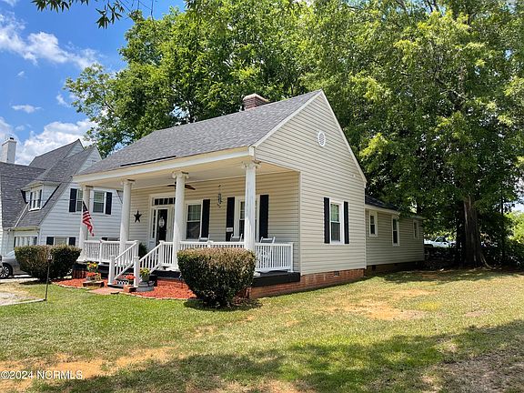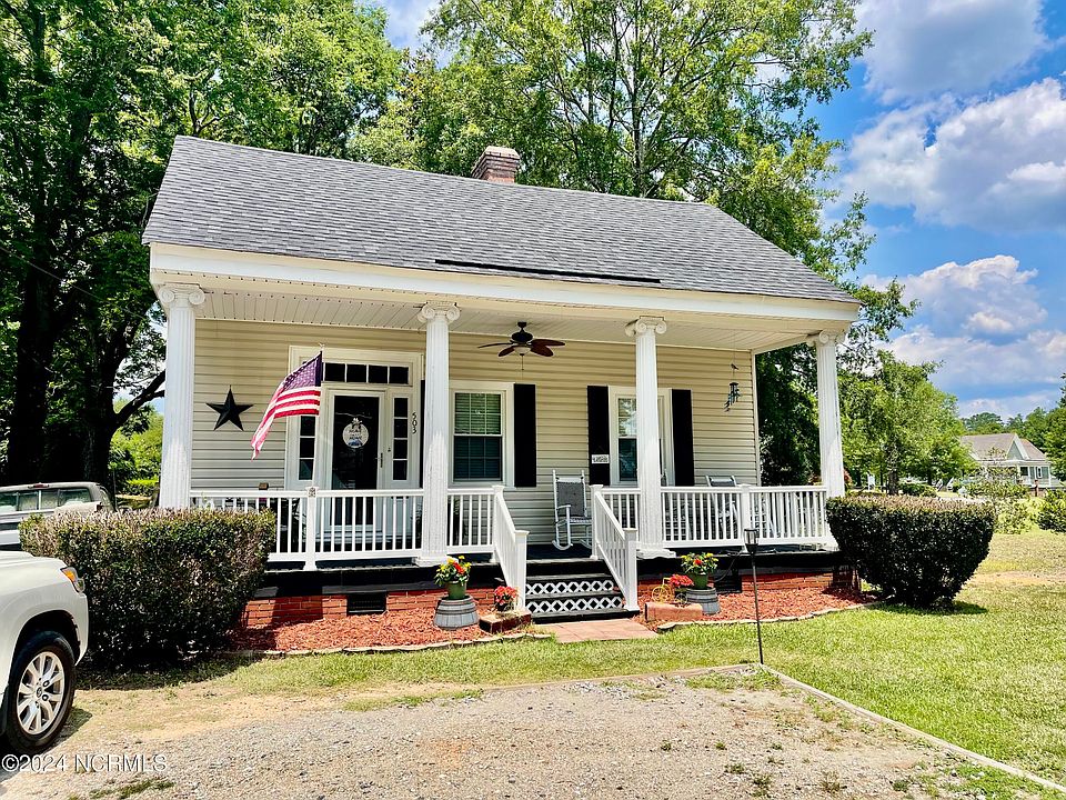 Welcome to this charming 2 bedroom, one bath home, perfect for cozy living. This home boasts a classic American porch with stately white columns. Step inside to discover a perfectly placed fireplace with a mantel replicated from the fireplace in The White House. The large eat-in kitchen allows for plenty of gathering space and leads into the delightful sunroom at the back of the home. The sunroom offers a serene space for morning coffee or an afternoon read.
