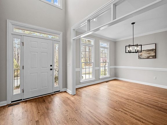 Beautifully UPDATED home in the highly sought-after Berryhill neighborhood, just minutes from UNC, Chapel Hill and downtown Carrboro! This 2,510 square foot home is complete with 2 car garage, 4-bedrooms, 2.5 baths and rests comfortably on a spacious 0.29-acre lot. Freshly refinished hardwood floors, new carpeting, and full interior paint create a crisp inviting atmosphere. Stylish new lighting fixtures in the dining area, foyer, and bedrooms elevate the aesthetic. The thoughtfully upgraded kitchen boasts stunning quartz countertops, large sink and faucet, gorgeous backsplash, new cabinet hardware, and a suite of new stainless-steel appliances, including a gas stove, hood, and dishwasher. This home maintains a bright and airy flow from the kitchen and breakfast nook through to the large family room with a new fan and beautiful gas fireplace which adds warmth and character. Upstairs the primary suite features a reimagined spa-like bathroom with a new dual sink quartz countertop, new lighting and fixtures, while the hall bath showcases fresh updates for a contemporary feel. The family and bonus rooms received new ceiling fans ensuring comfort year-round. Exterior enhancements include freshly painted black railings, a newly stained deck, and a revitalized landscape with mulch and power-washing that bring out the best of the home. With its refined updates and spacious layout, this home presents a rare opportunity to enjoy a beautifully UPDATED home close to the best that Chapel Hill and Carrboro has to offer. Don't miss this opportunity.