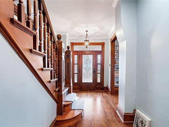 This stately 1899 home was tastefully renovated in 2016, combining classic character with modern updates. The expanded kitchen offers plenty of space and function, with the main level laundry room conveniently located nearby. Original woodwork blends beautifully with the newer finishes, and hardwood floors add warmth throughout.