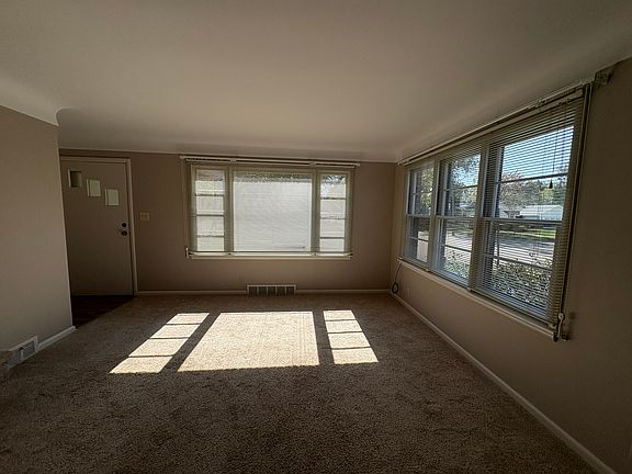 This home offers a welcoming mid-century vintage vibe with thoughtful details throughout. Cove molding in the living room. The upstairs features two comfortable bedrooms with ceiling fans and a classic green-tiled bathroom. A full well-lit basement provides ample storage space along with a convenient laundry area. West and south exposure provides bright sunlight for houseplant lovers. New furnace / AC and water heater. Unfenced lawn with gardening opportunities.