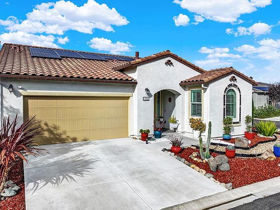 Stunning single-story home in the guard-gated Trilogy at Rio Vista on a desirable corner lot. This thoughtfully upgraded floor plan offers 2 bedrooms, 2 baths and owned solar for energy savings. Bright, open layout features a double-sided gas fireplace visible from both the family room and formal living room, creating a warm, inviting atmosphere. The kitchen showcases slab countertops and stainless-steel appliances, flowing seamlessly to dining and living spacesideal for everyday living and entertaining. Huge walk in closet in primary that flows from the laundry room for maximum convenience. Enjoy low-maintenance landscaping and a covered backyard patio for outdoor relaxing. The 2-car garage is equipped with an EV battery charger for convenient electric vehicle charging. Trilogy at Rio Vista lifestyle amenities include an 18-hole championship golf course, club house, multiple restaurants, a health & wellness center, indoor/outdoor pools, tennis, pickleball and bocce courts, a dog park and extensive walking trails. Perfect lock-and-leave living with resort-style amenitiesdon't miss this exceptional home.