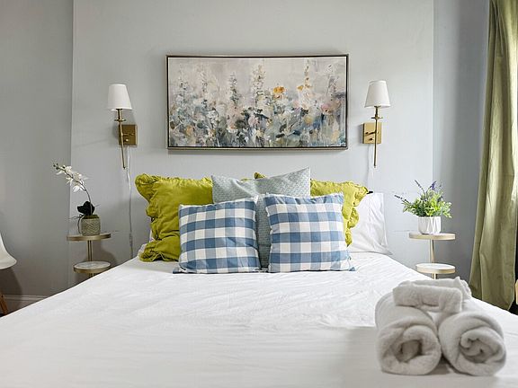 Discover a cozy 1-bedroom, 1-bathroom studio apartment near First Avenue in Evansville, ideal for work or family stays. This main floor apartment features a queen-sized bed, a fully equipped kitchen, a comfortable living space, and washers and dryers on site. Built in 1906 and fully renovated in 2024, the Cardinal building offers seven unique apartments professionally designed by local artists to make every guest's experience comfortable and enjoyable. Feel at home with amenities like Wi-Fi, a Smart TV, and a designated workspace. Thoughtfully designed with a queen-sized bed, a fully equipped kitchen, and a comfortable living space, this studio apartment ensures you feel at home. Enjoy streaming your favorite shows on the Smart TV or working efficiently in the designated workspace. The building offers free parking for all guests and access to a 24/7 laundry room on the premises. Conveniently located by First Avenue, this apartment is close to a variety of Evansville's downtown restaurants, shops, and attractions. It's perfect for professionals or families seeking a convenient and relaxing home base. This studio apartment is a private space with its own entry and dedicated parking spot. The only shared space is the laundry room, which is located next door and available 24/7 for guest use.