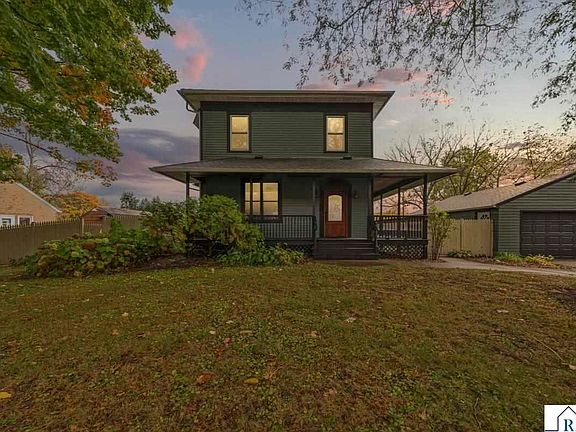 Experience the perfect blend of historic charm and modern convenience! This beautifully updated 5-bedroom, 4-bath home offers small-town living at its finest, just a short and easy commute to the Twin Cities. Situated on a double lot, the property features mature trees, a fully fenced backyard with fruit trees and raspberry bushes, a paved backyard patio, a wrap-around front porch with wood ceiling, a freshly painted, beautiful exterior, upgraded modern exterior windows and doors, keypad deadbolt door locks on all exterior doors, and a detached garage for convenience and storage. Inside, you'll find a freshly painted interior, hardwood floors and ceramic tile throughout, beautiful leaded glass windows, a three-season sun porch with a loft—ideal for relaxing or entertaining, and numerous ceiling fans. The kitchen is equipped with updated stainless-steel appliances and beautiful, locally handcrafted cabinetry, including a center island with a counter for dining and ample storage space beneath. A newly finished walk-out basement adds valuable living space, including a large family room and a bedroom with an egress window. The home is wired for fiber internet and features enhancements including a tankless boiler, tankless water heater, Kinetico water softener and whole-house water filter, and a high-efficiency washer/dryer. Two sets of washer/dryer hookups are located on the 2nd floor and in the walk-out basement for added convenience. The high quality and timeless character of a historic home, plus thoughtful modern upgrades, is a rare gem! Don’t miss your chance to make it yours—schedule a showing today!